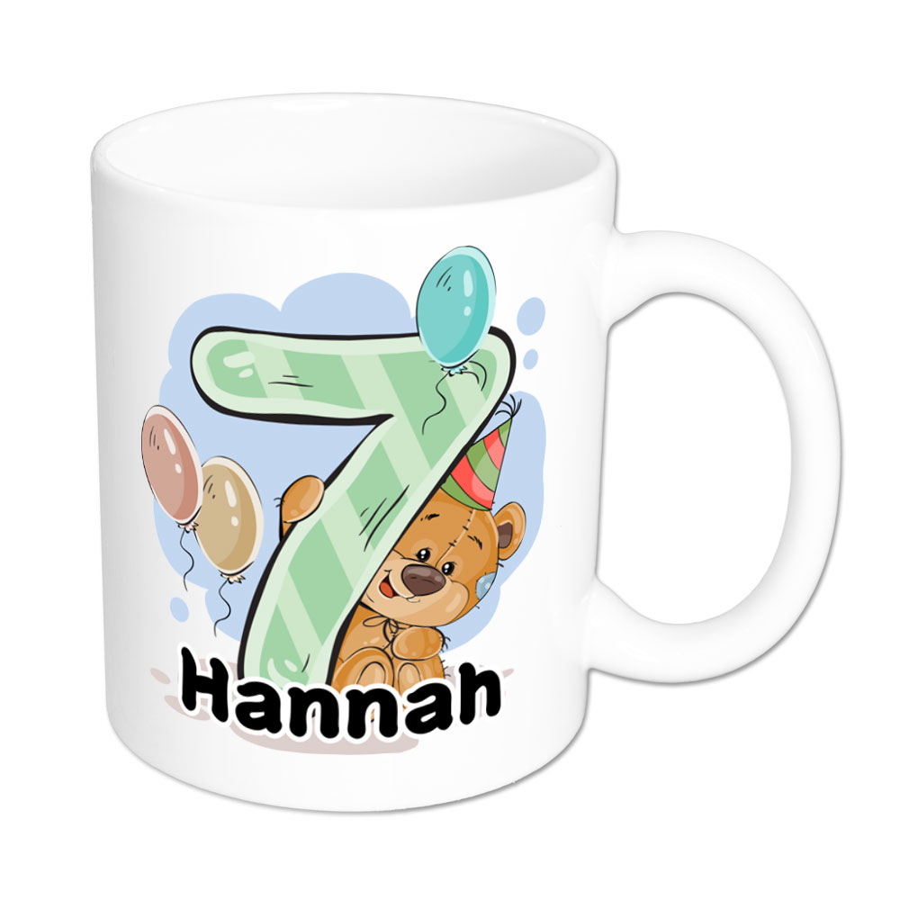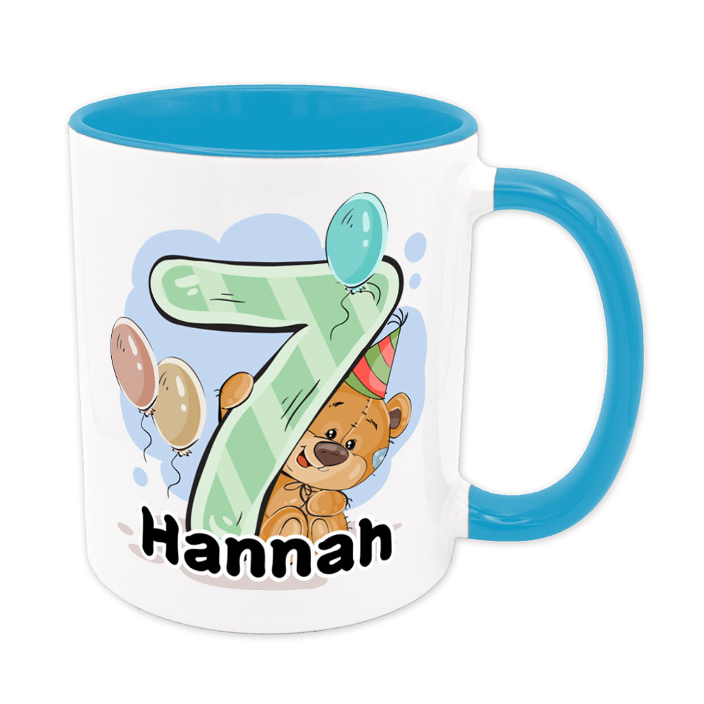 Bärchen-Tasse zum 7. Geburtstag – individualisierbar – Namenstasse