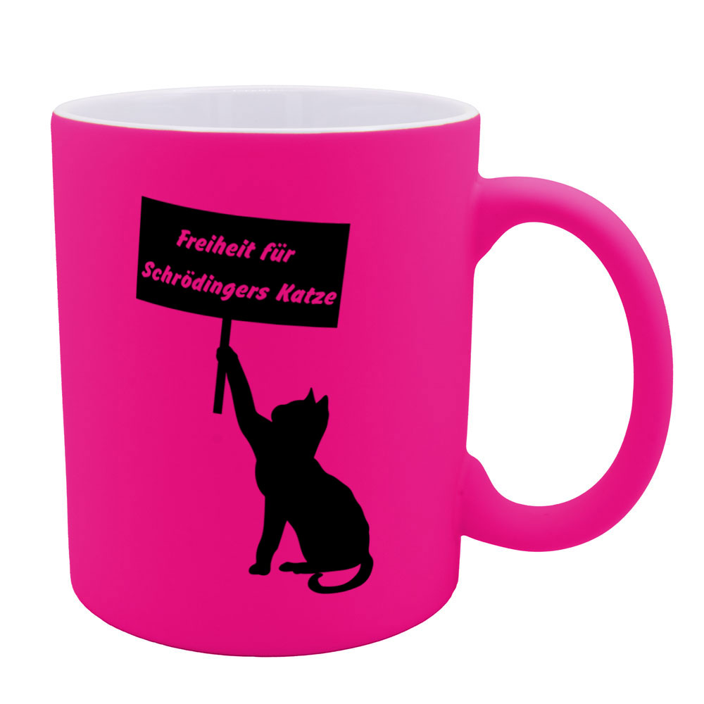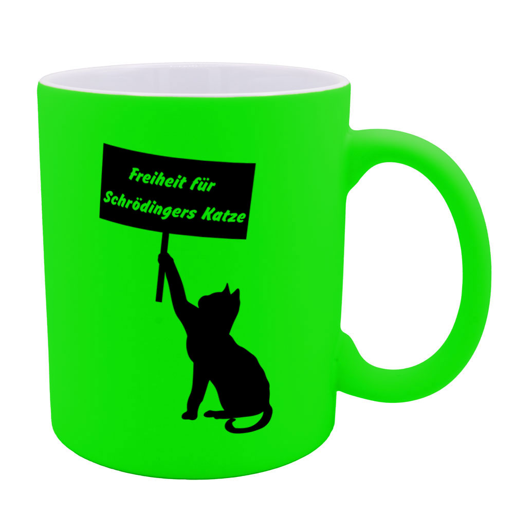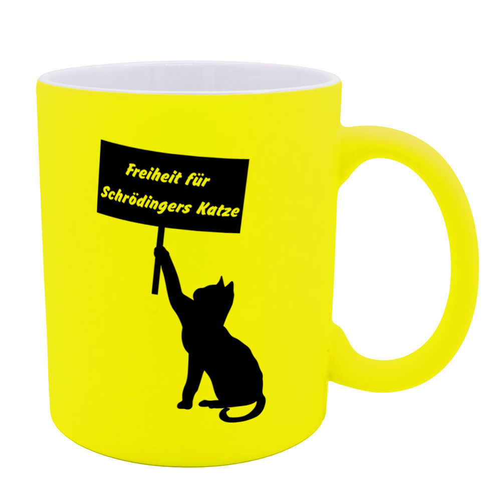 - Die Tasse besteht aus matter Keramik in einer der vier Neonfarben.
