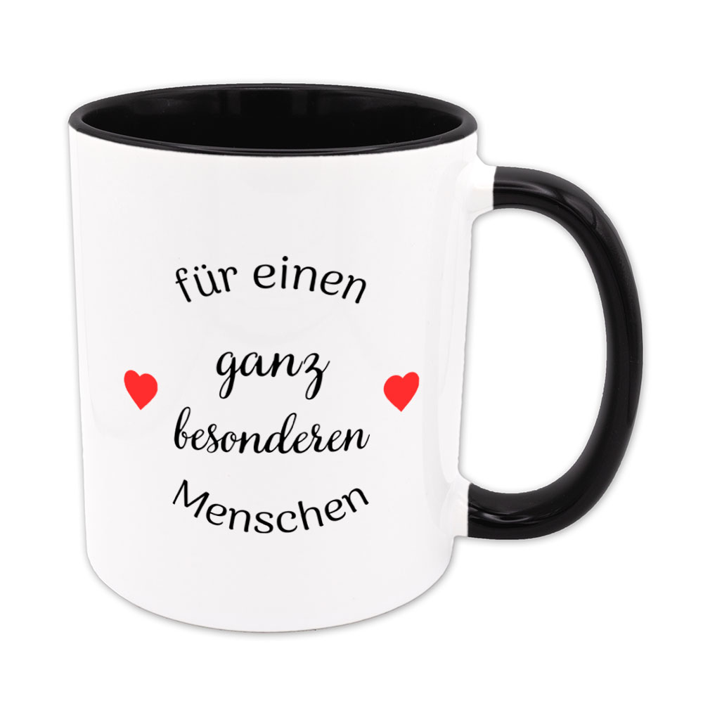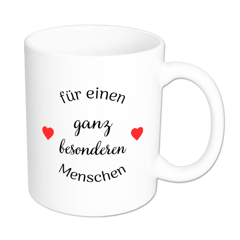 Es gibt ihn auch in Deinem Leben: diesen ganz besonderen Menschen, den Du nicht missen möchtest. Du suchst ein kleines Geschenk oder willst diesem Menschen zeigen, wie wichtig er für Dich ist. Mit der Tasse „für einen ganz besonderen Menschen“, verziert mit zwei roten Herzen, machst Du alles richtig.