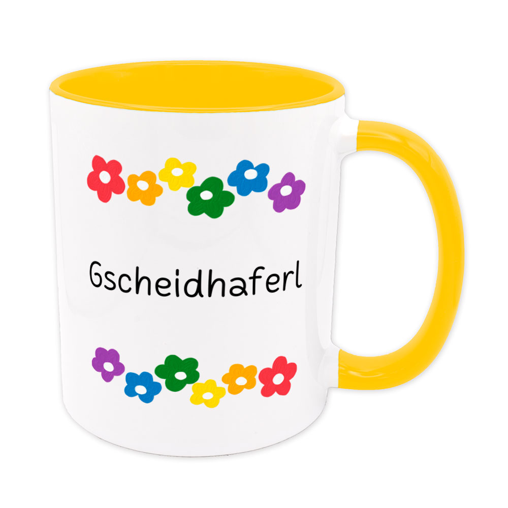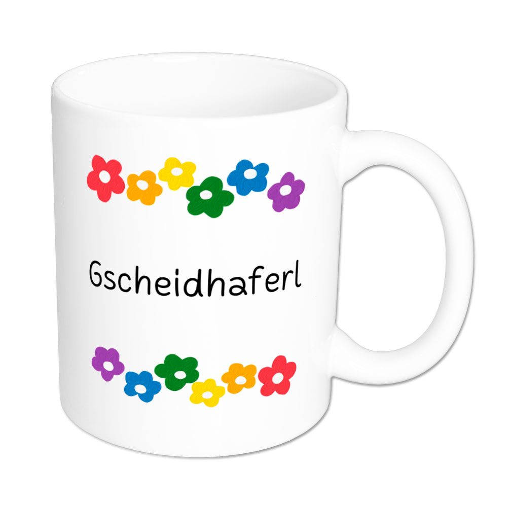 Gscheidhaferl – Blumen – Sprüchetasse – Kaffeebecher – lustig