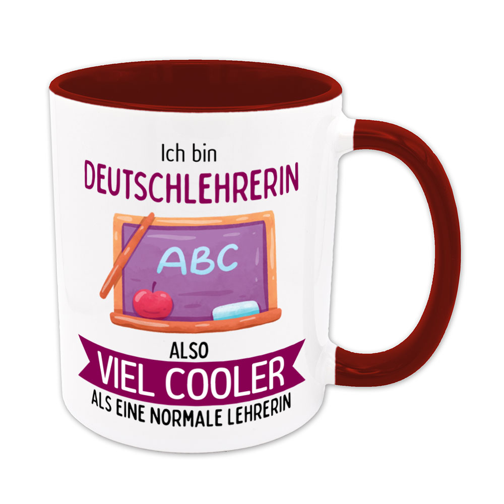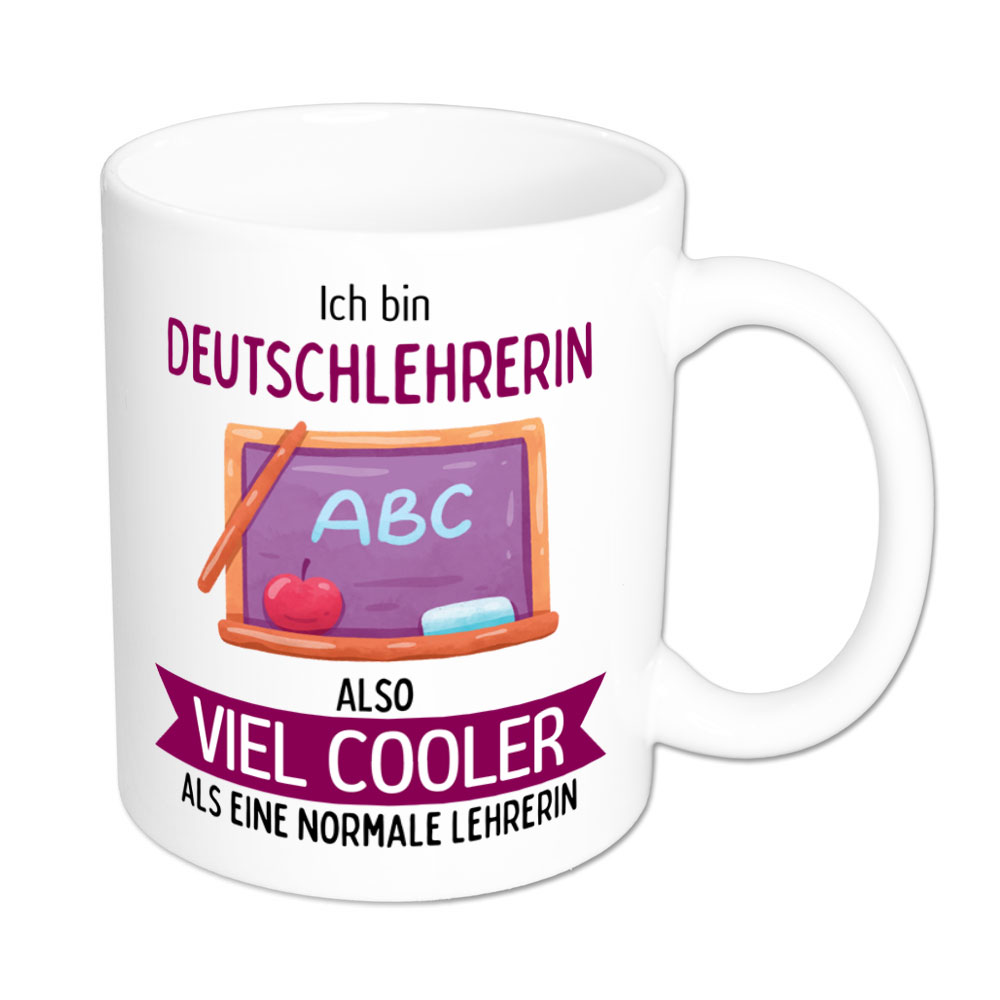 Jede Lehrerin ist enorm wichtig für die Schule, die Schülerinnen und Schüler. Dennoch gibt es natürlich Unterschiede in den Fächern und vielleicht gibt es die ein oder andere Deutschlehrerin, die irgendwie cooler ist als eine „normale“ Lehrerin. Für all diese ist die lustige Tasse gedacht.
