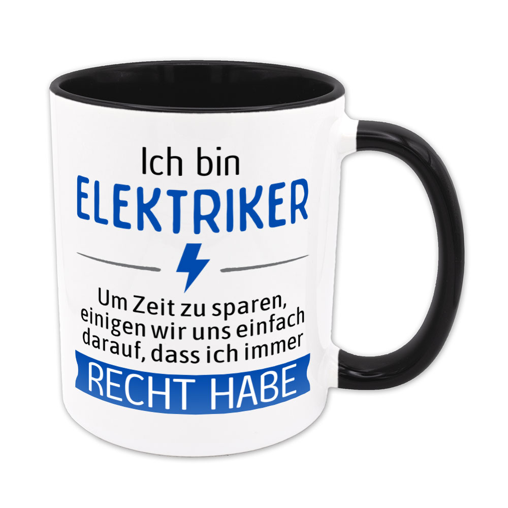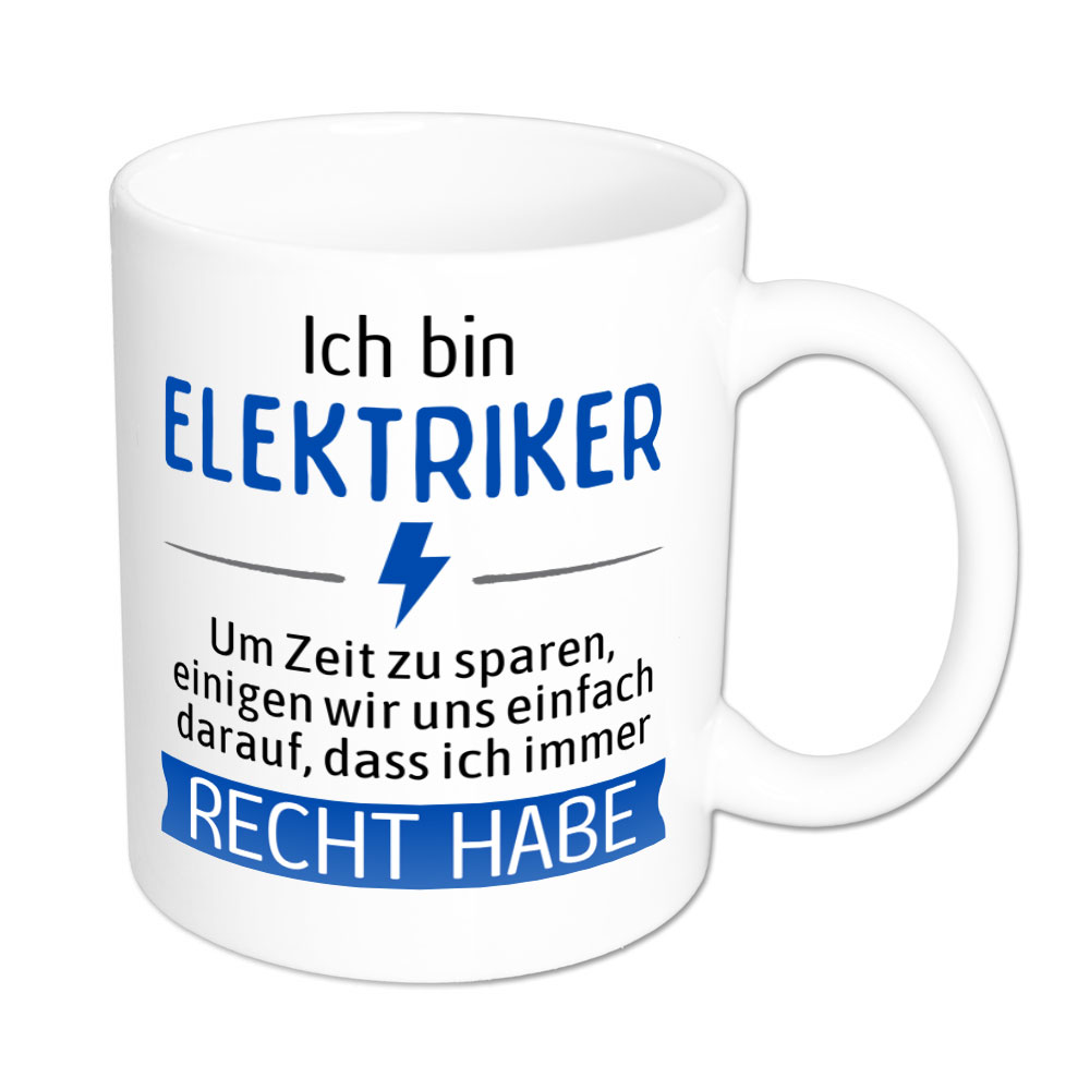 Eigentlich ist es leicht zu verstehen. Es gibt Menschen, die haben aufgrund ihres Berufes Recht. Immer. Mit der Tasse „Ich bin Elektriker. Um Zeit zu sparen, einigen wir uns einfach darauf, dass ich immer Recht habe.“ machst Du diesen Menschen eine große Freude, denn nun müssen sie nicht mehr so viel erklären.