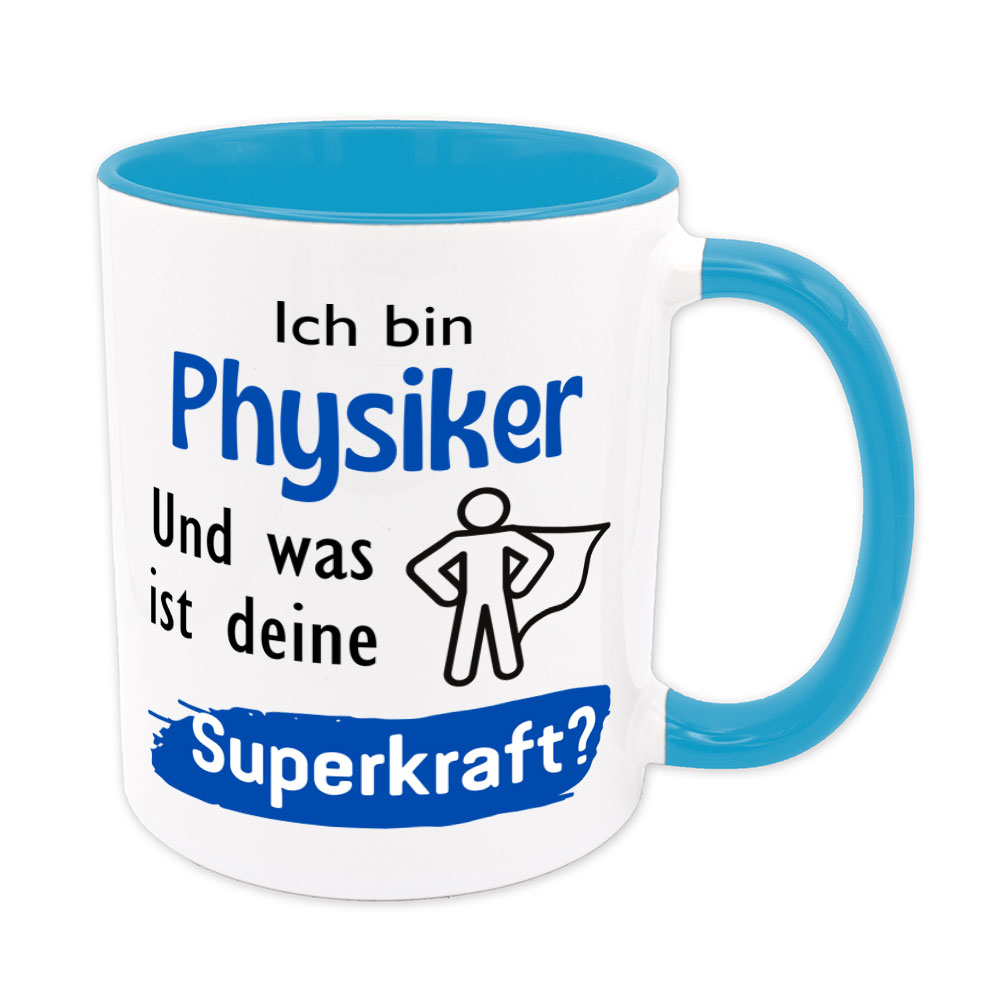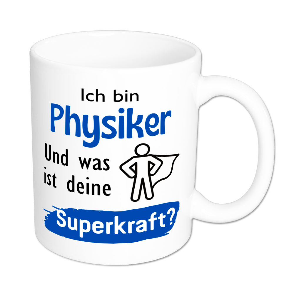 Physiker sein ist eine wahre Superkraft, die Menschen diesen Berufes jeden Tag mit Wissen und Leidenschaft nutzen. Die Tasse „Ich bin Physiker. Und was ist deine Superkraft?“ kommt selbstbewusst mit Superheld im Umhang daher.