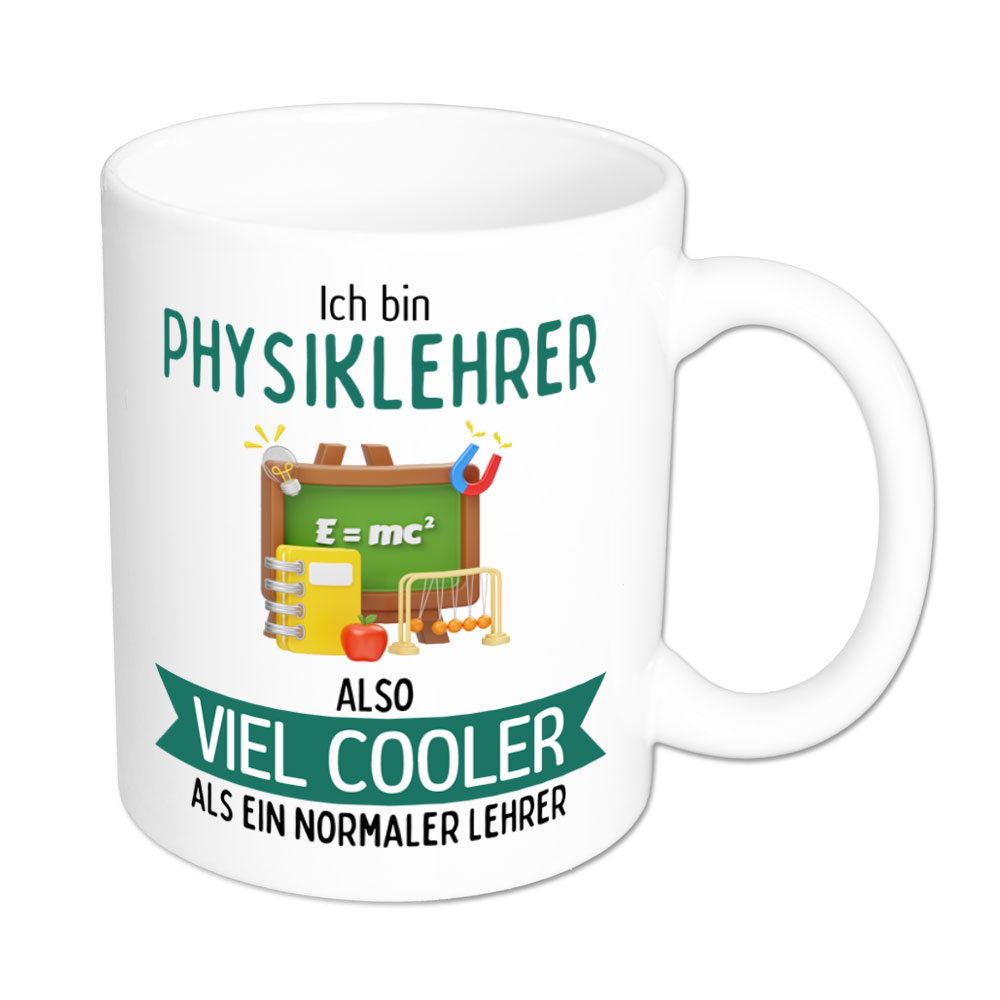 Jeder Lehrer ist enorm wichtig für die Schule, die Schülerinnen und Schüler. Dennoch gibt es natürlich Unterschiede in den Fächern und vielleicht gibt es den ein oder anderen Physiklehrer, der irgendwie cooler ist als ein „normaler“ Lehrer. Für all diese ist die lustige Tasse gedacht.