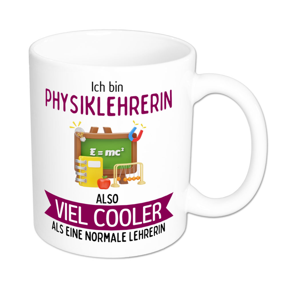 Jede Lehrerin ist enorm wichtig für die Schule, die Schülerinnen und Schüler. Dennoch gibt es natürlich Unterschiede in den Fächern und vielleicht gibt es die ein oder andere Physiklehrerin, die irgendwie cooler ist als eine „normale“ Lehrerin. Für all diese ist die lustige Tasse gedacht.