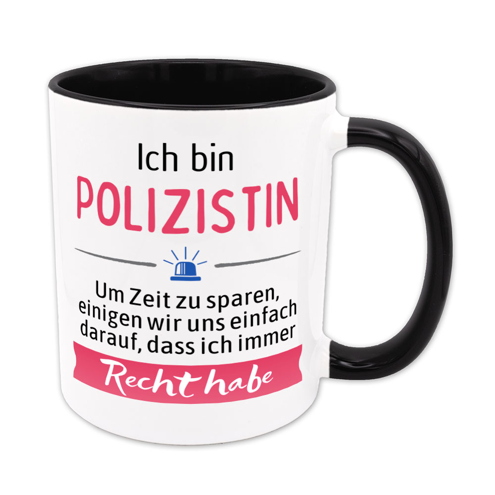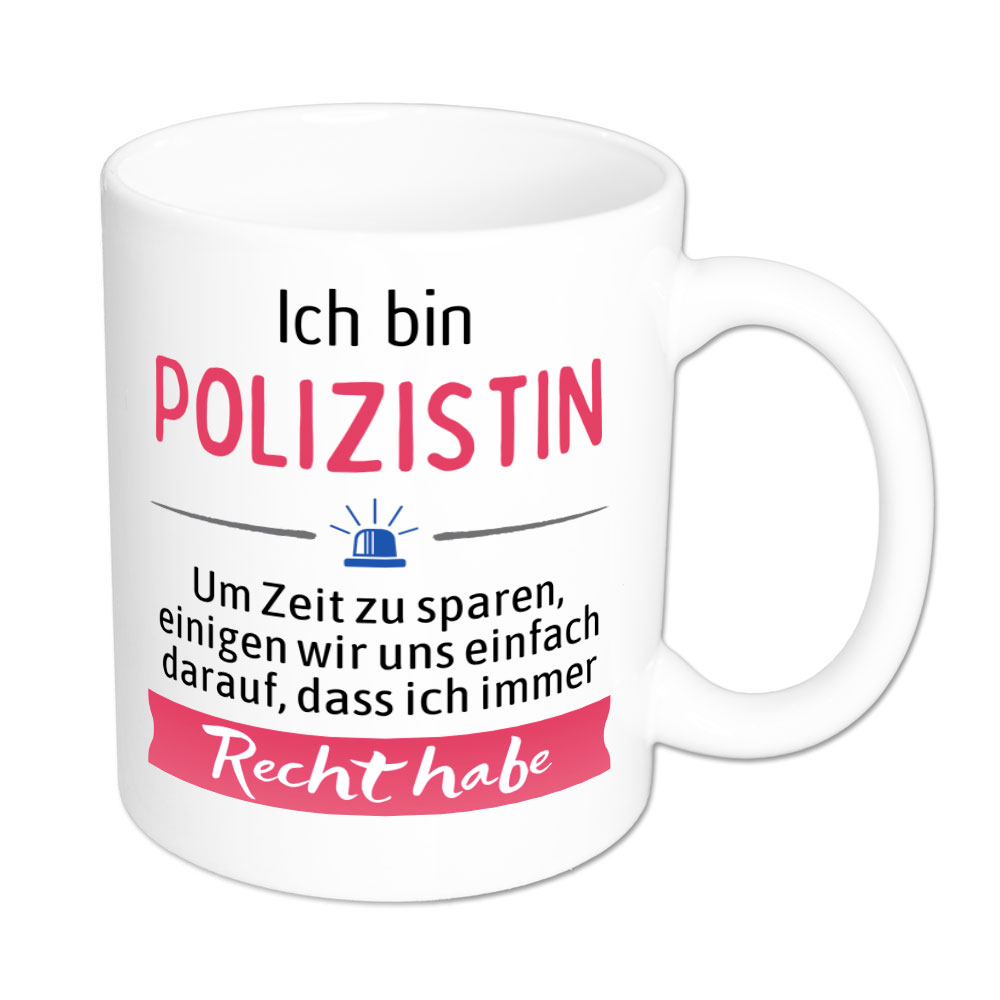 Eigentlich ist es leicht zu verstehen. Es gibt Menschen, die haben aufgrund ihres Berufes Recht. Immer. Mit der Tasse „Ich bin Polizistin. Um Zeit zu sparen, einigen wir uns einfach darauf, dass ich immer Recht habe.“ machst Du diesen Menschen eine große Freude, denn nun müssen sie nicht mehr so viel erklären.