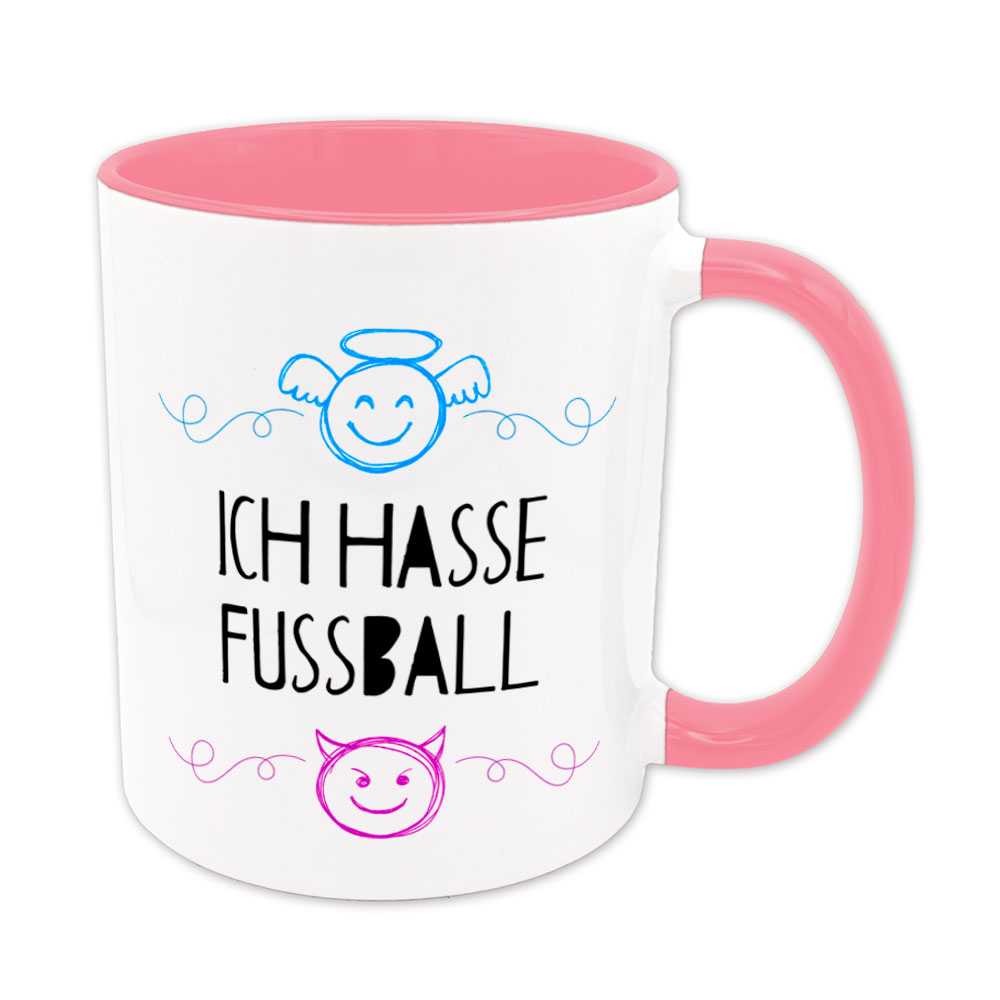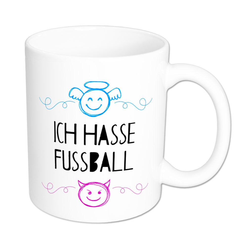 Es soll ja vorkommen, dass es Menschen gibt, die dem Rasensport nichts abgewinnen können. Denen Fußballspiele viel zu überdimensioniert und sinnlos erscheinen. Für Menschen, welche diese Einstellung auch beim täglichen Kaffeegenuss zum Ausdruck bringen möchten, ist diese Sprüchetasse mit der eindeutig formulierten Botschaft „Ich hasse Fußball“ perfekt geeignet.