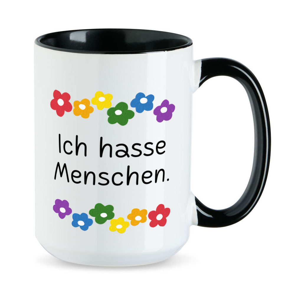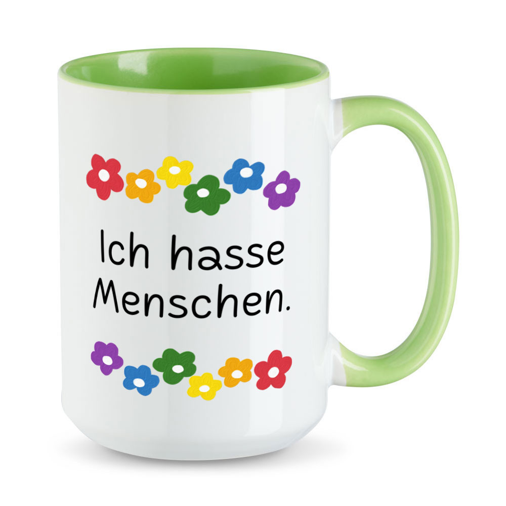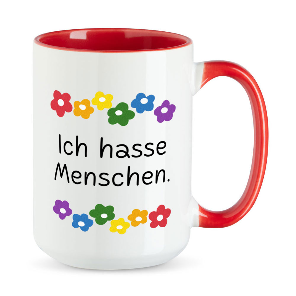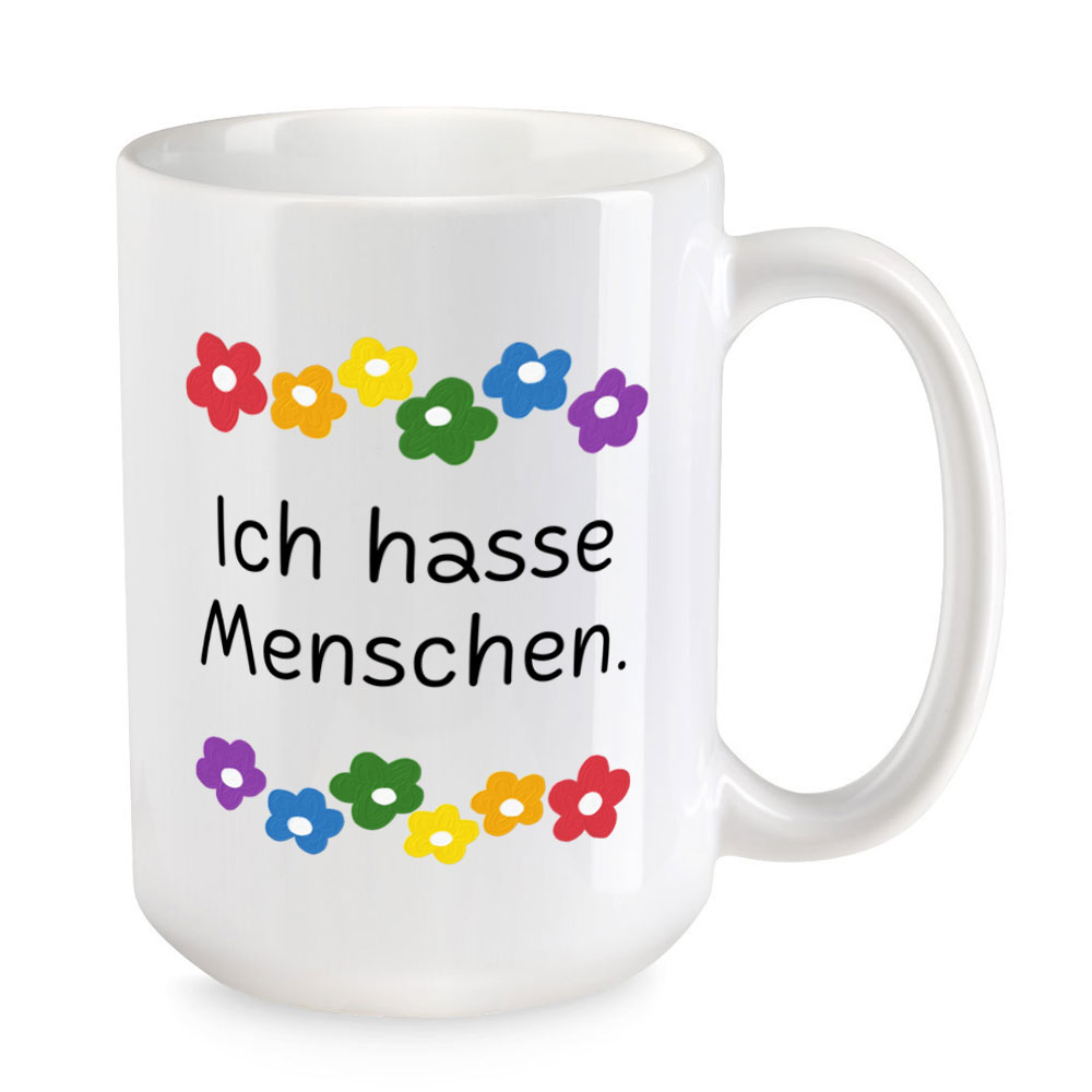 Die quietschbunte und extra große Sprüchetasse „Ich hasse Menschen“ ist perfekt für diejenigen Tage geeignet, an denen Du wirklich nichts mit Deinen Mitmenschen anzufangen weißt. Weil sie nerven zum Beispiel. Oder komisches Zeug erzählen. Oder einfach nur existieren. Gut zu wissen: Es kommen meistens auch wieder bessere Tage.