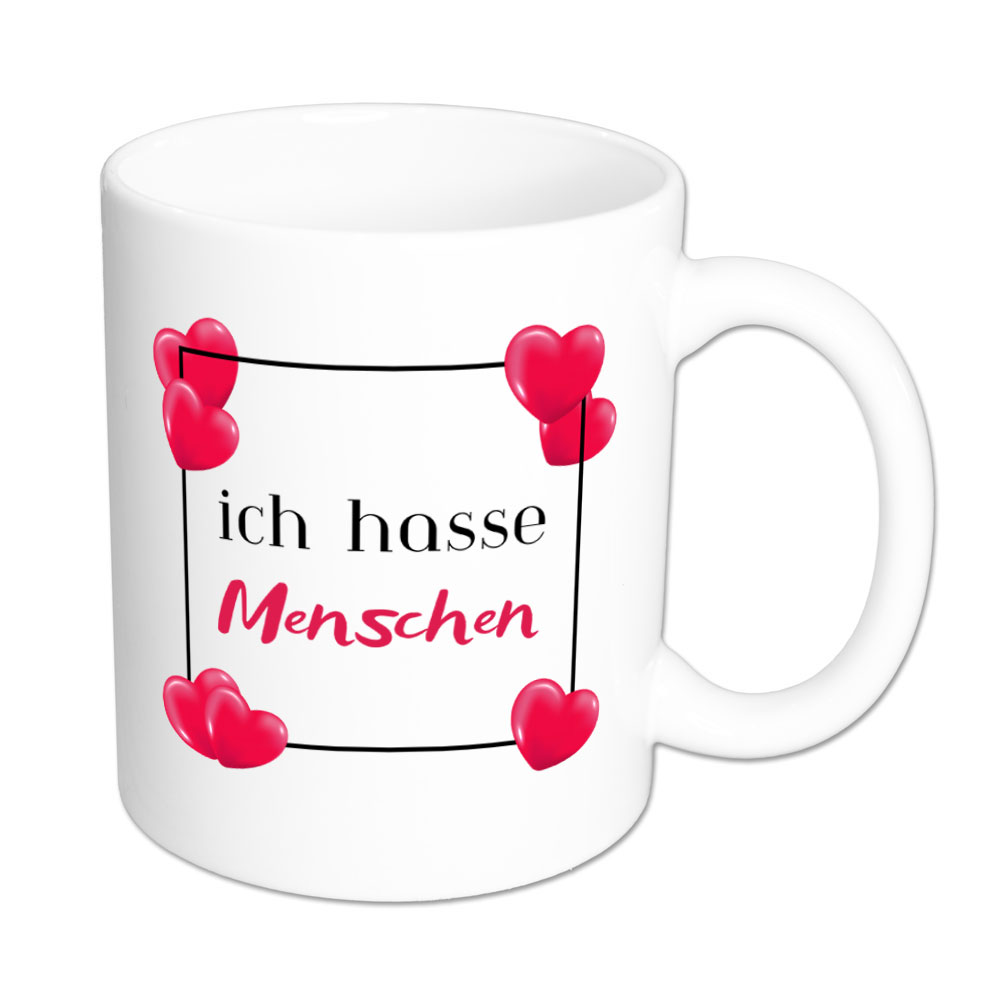 Nicht nur Dein Gesicht kann erzählen, was Du von den neuesten Ideen Deiner Umgebung hälst… Nein, auch Deine lustige Tasse kann das. Mit „ich hasse Menschen“ drückst Du auf deutliche Weise aus, dass Du mit Menschen und ihren Eigenarten gerade nichts anfangen kannst.