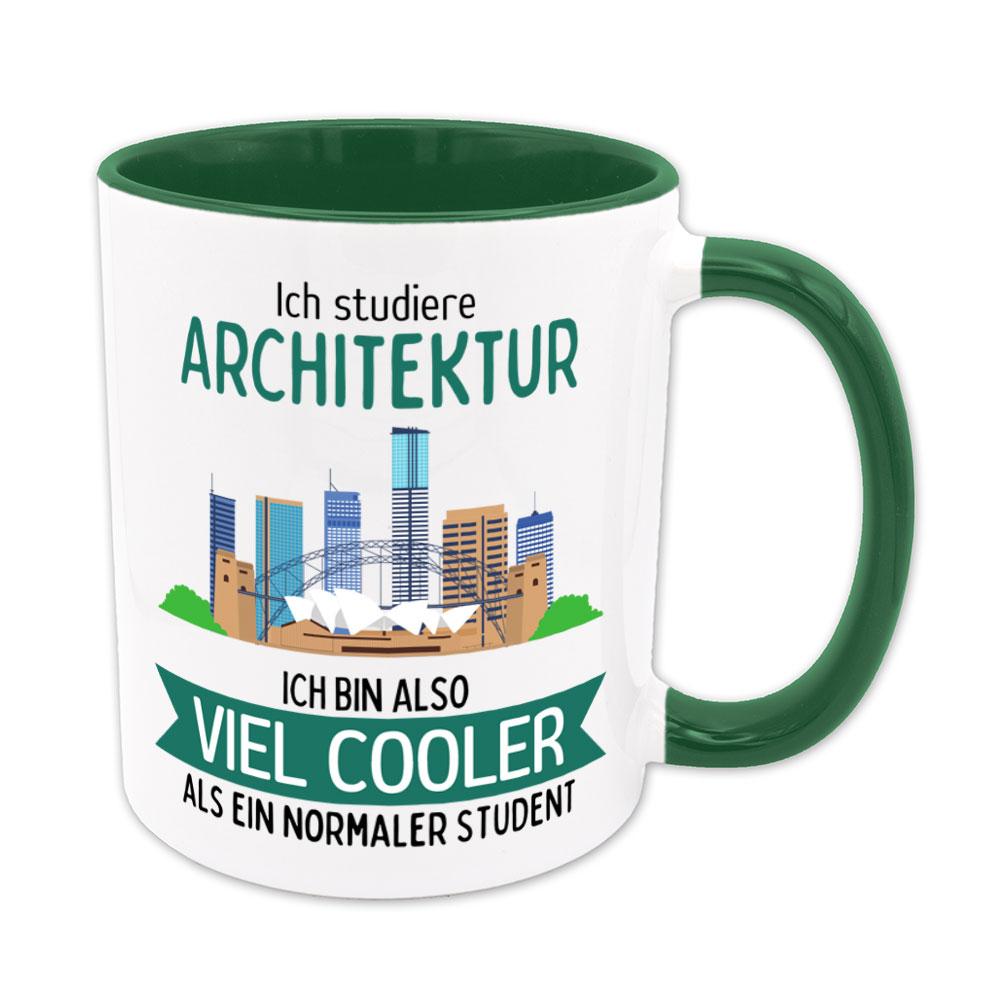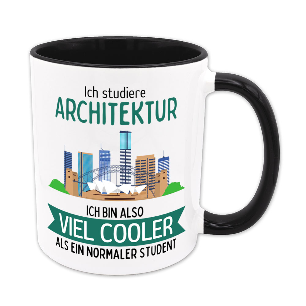 Wer Architektur studiert, liebt die Möglichkeiten des Gestaltens von Häusern und Gebäuden. Dieses Studienfach beinhaltet sowohl Technik als auch Mathematik, Statik, Projektmanagement und die Anwendung von Grafikprogrammen. Da kommt so mancher Studierender bestimmt auf die Idee: „Ich studiere Architektur, ich bin also viel cooler als ein normaler Student“- und genau das steht auf dieser lustigen Sprüchetasse.