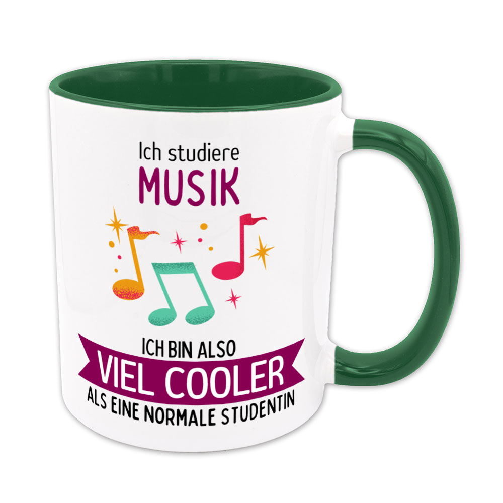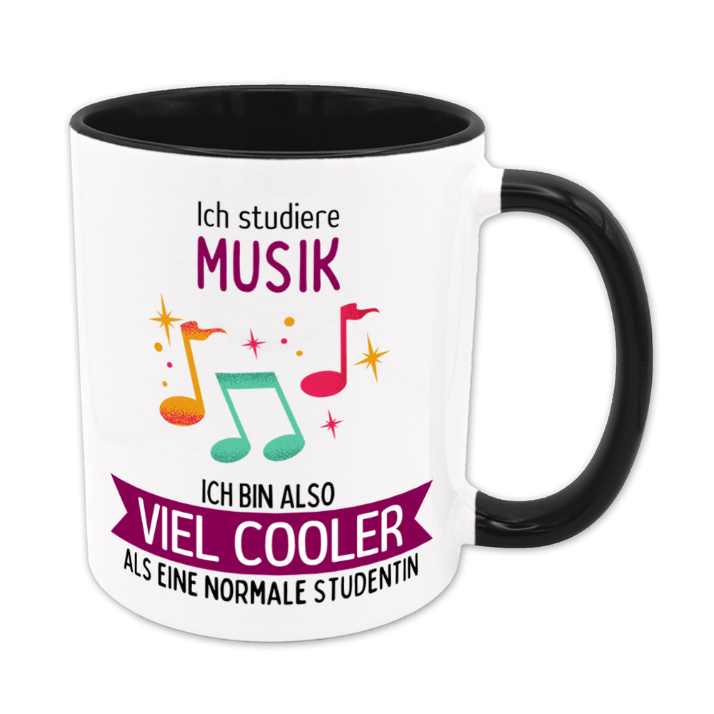 Wer Musik studiert, liebt Harmonie, gelungene Kompositionen und Musikinstrumente. Dieses Studienfach erfordert Selbstbewusstsein und Empathie. Da kommt da so manche Studierende bestimmt auf die Idee: „Ich studiere Musik , ich bin also viel cooler als eine normale Studentin“- und genau das steht auf dieser lustigen Tasse.