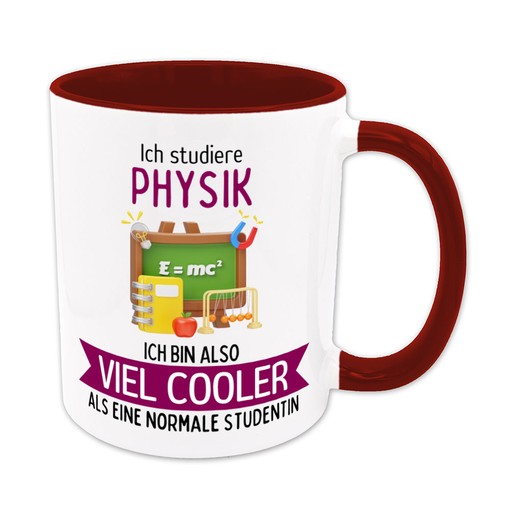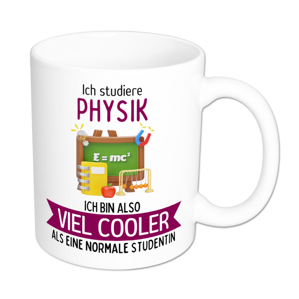 Wer Physik studiert, hat sich ein fabelhaftes, aber nicht ganz einfaches Studienfach ausgesucht. Selbstbewusst kommt da so mancher Studierender bestimmt auf die Idee: „Ich studiere Physik, ich bin also viel cooler als eine normale Studentin“- und genau das steht auf dieser lustigen Tasse.