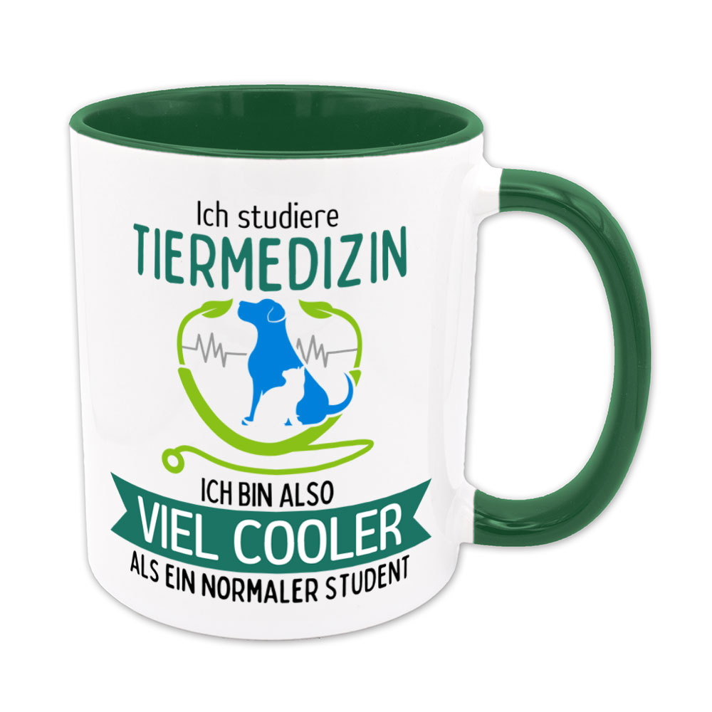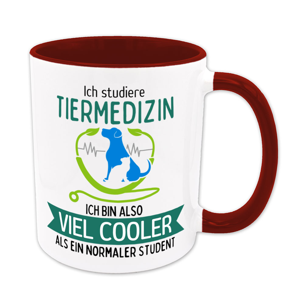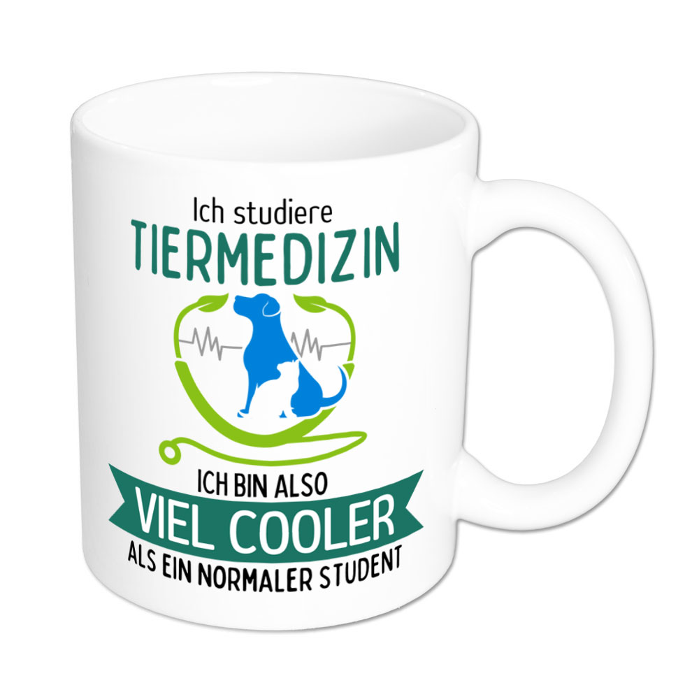 Wer Tiermedizin studiert, liebt alles, was die vielen unterschiedlichen Tierarten krank oder gesund machen kann. Dieses Studienfach ist enorm breit gefächert und erfordert viel Fleiß, Durchhaltevermögen, analytisches Denken und ein hervorragendes Gedächtnis. Da kommt so mancher Studierender bestimmt auf die Idee: „Ich studiere Tiermedizin, ich bin also viel cooler als ein normaler Student“- und genau das steht auf dieser lustigen Sprüchetasse.