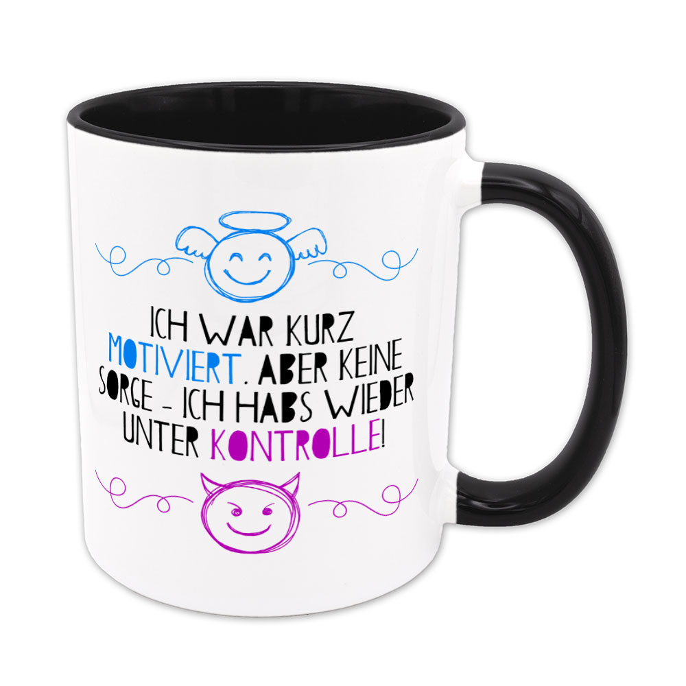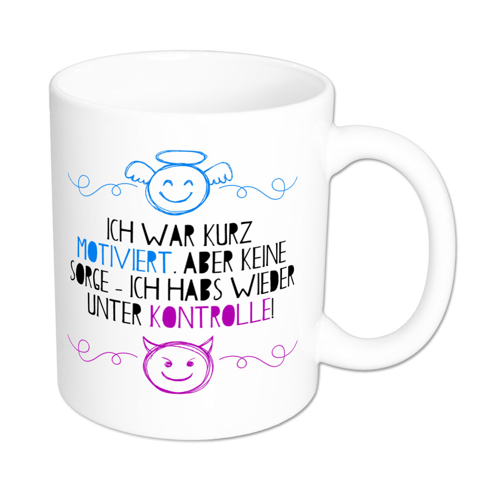 „Ich war kurz motiviert. Aber keine Sorge – ich habs wieder unter Kontrolle“. Langer Spruch auf dieser Tasse, aber voll zutreffend. Also zumindest von Montag bis Freitag. Wäre ja auch nicht auszudenken, wenn man mal Lust auf die Arbeit hätte. 😉