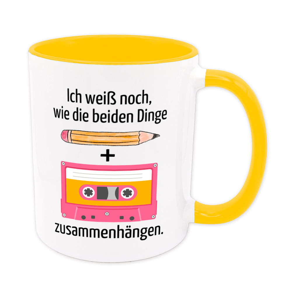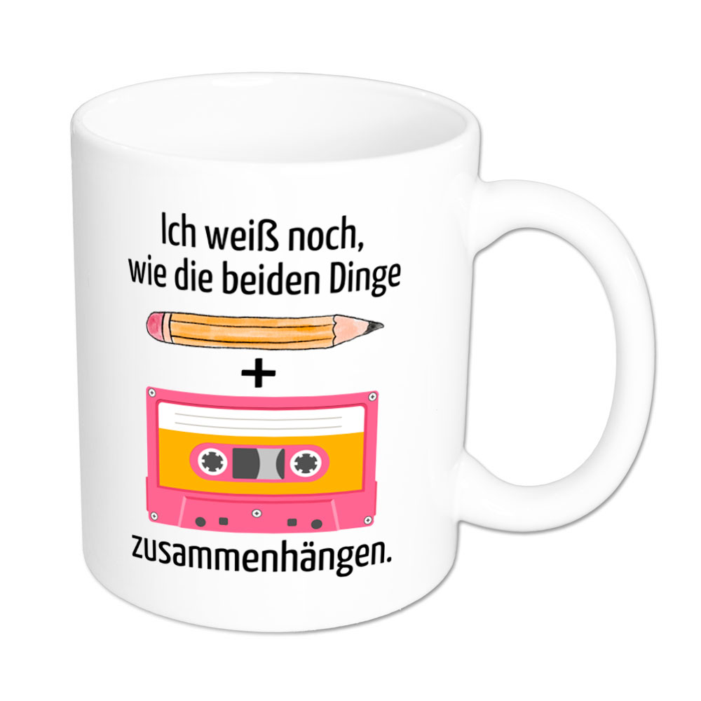 Ich weiß noch, wie die beiden Dinge zusammenhängen. – Tasse