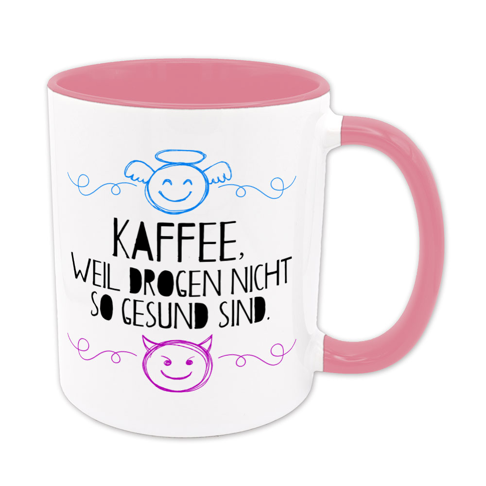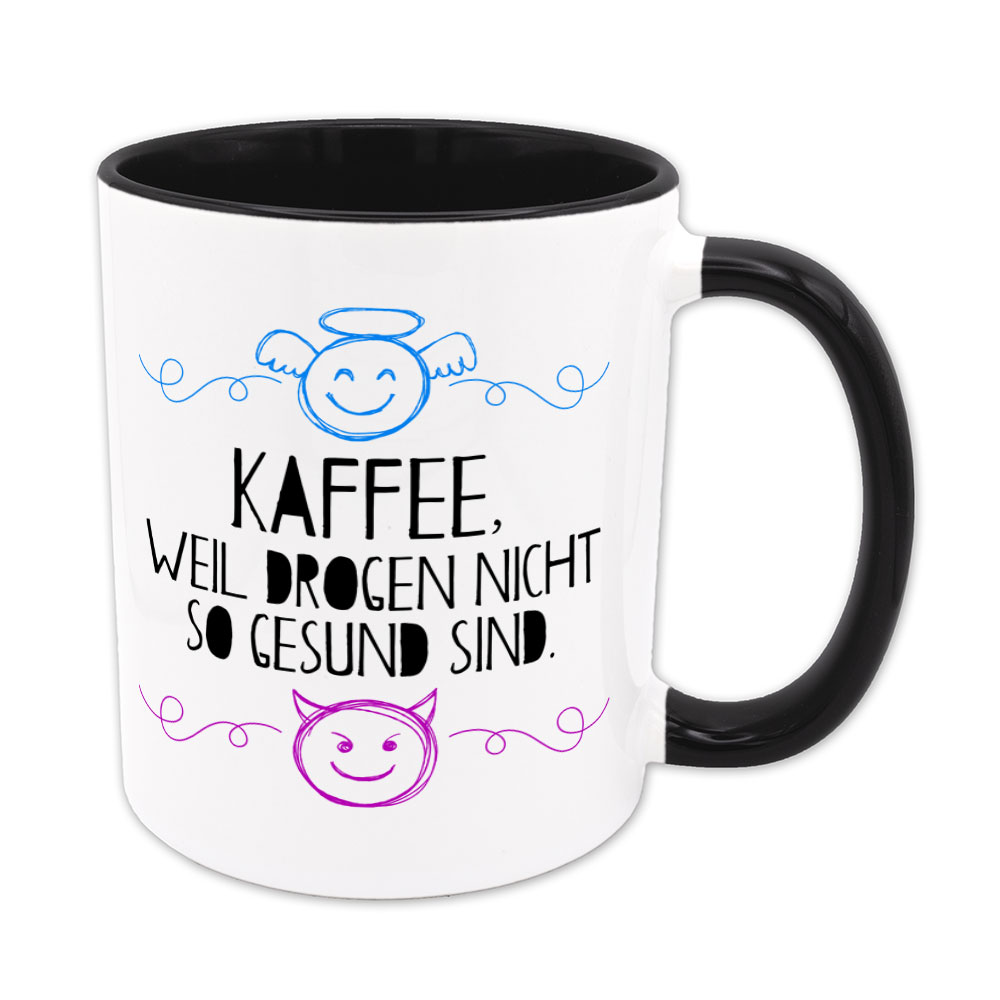 Wenn sich die Idiotie der anderen gerade wieder zum höchsten Berg der Welt auftürmt: Bleib beim Kaffee, andere Drogen sind nicht so gesund. Diese lustige Sprüchetasse aus unserer E&T Serie erinnert Dich daran.