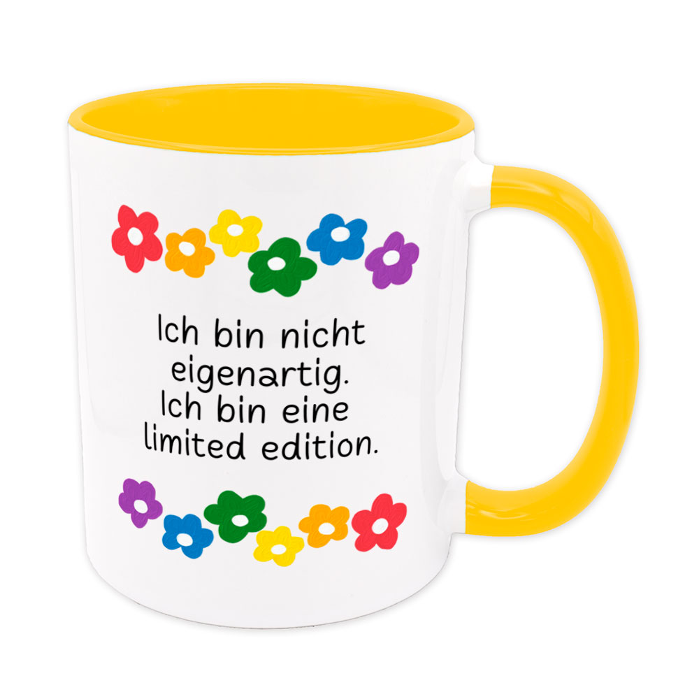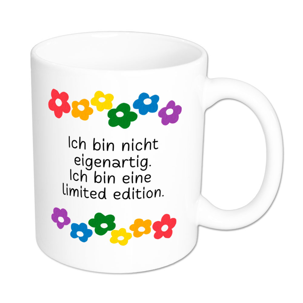 Es liegt ja alles im Auge des Betrachters. Einige Eigenschaften an Dir sind speziell, okay. Aber genau das ist Deine Stärke! Denn Du bist nicht eigenartig, sondern eine limited edition – und die will schließlich jeder haben! Genau wie diese lustige Sprüchetasse.