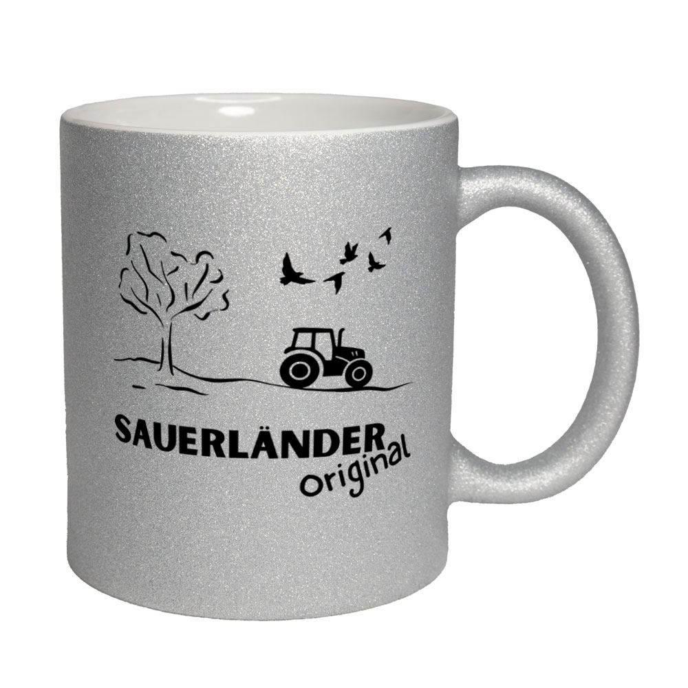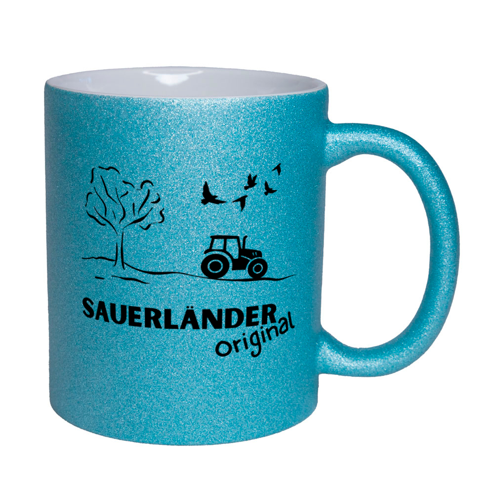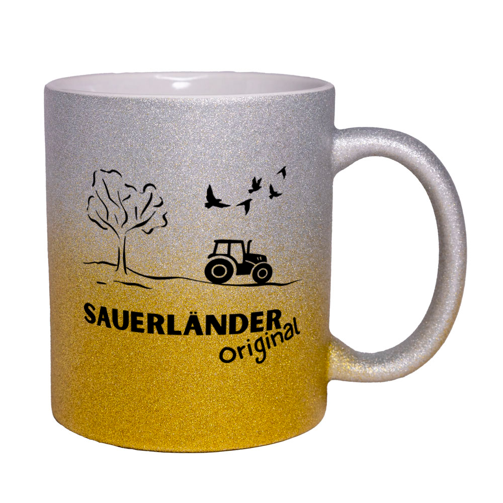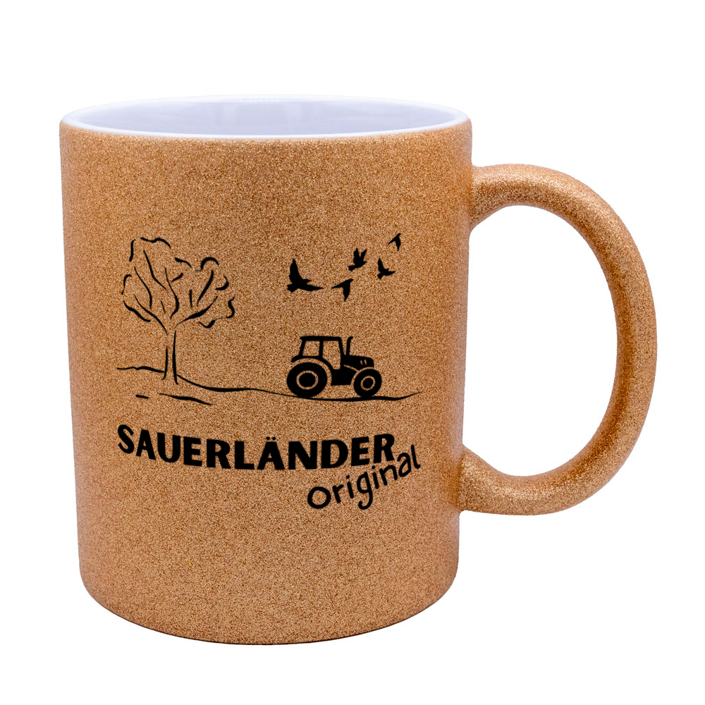 - Die Tasse besteht aus matter Keramik mit Glitzereffekt.