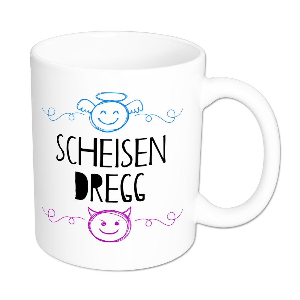 Sagt zwar das gleiche, aber dennoch finden wir die Tasse „Scheisendregg“ viel sympathischer als es der Ausdruck „Scheißdreck“ je sein könnte.