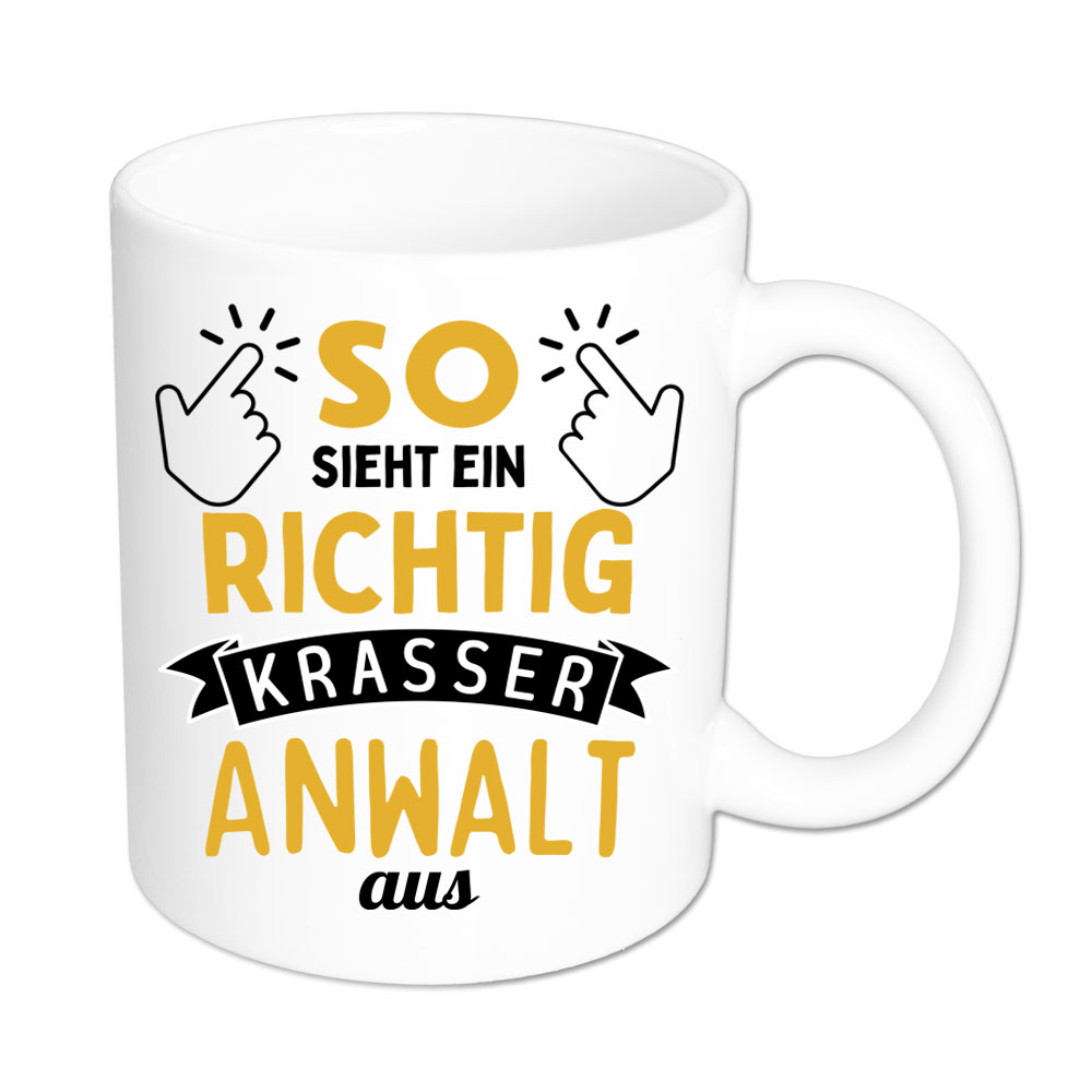 Du bist oder kennst einen supertollen Anwalt, der Dir zu Deinem Recht verholfen und sich Zeit für Dich genommen hat? Du schätzt sein Wissen und Können? Dann ist er der wohl krasseste und tollste Anwalt der Welt. Für ihn ist die Tasse „So sieht ein richtig krasser Anwalt aus“ ein schönes Geschenk.