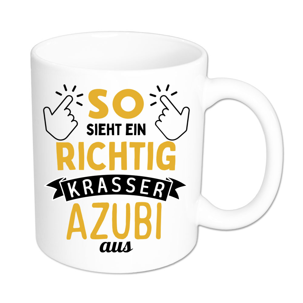 Du hast oder kennst einen supertollen Auszubildenden und bist stolz auf sein Wissen und Können? Dann ist er der wohl krasseste und tollste Azubi der Welt. Für ihn ist die Tasse „So sieht ein richtig krasser Azubi aus“ ein schönes Geschenk.