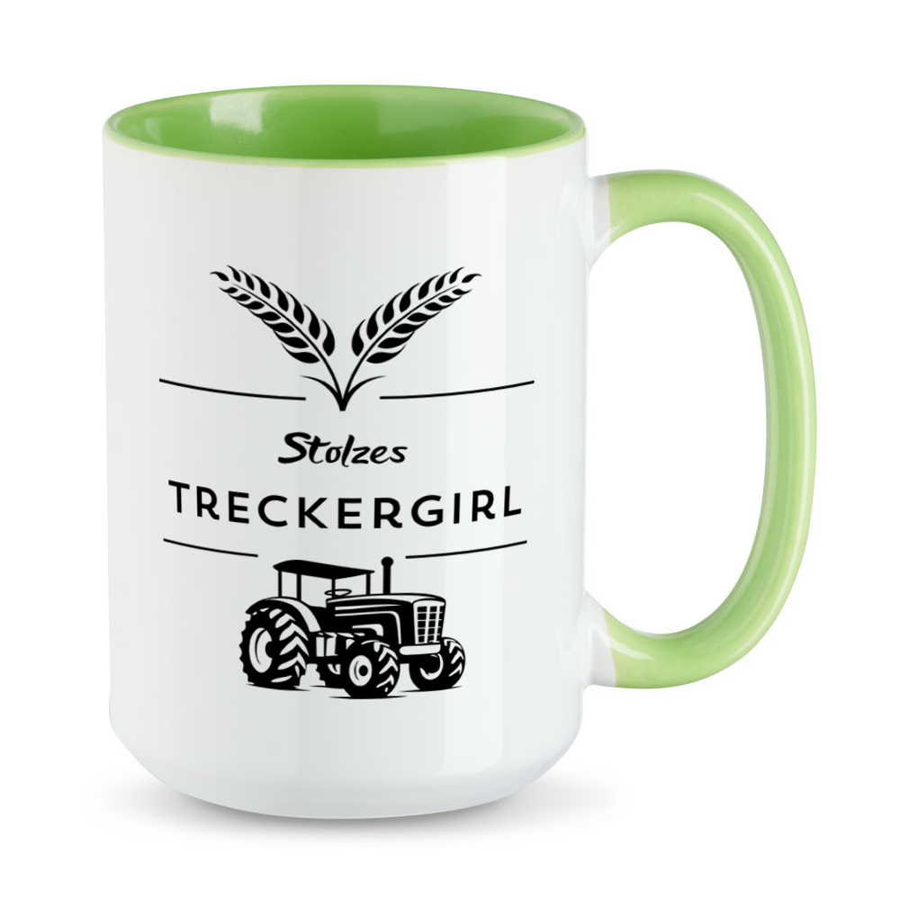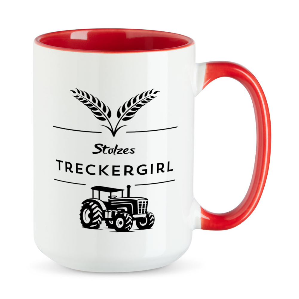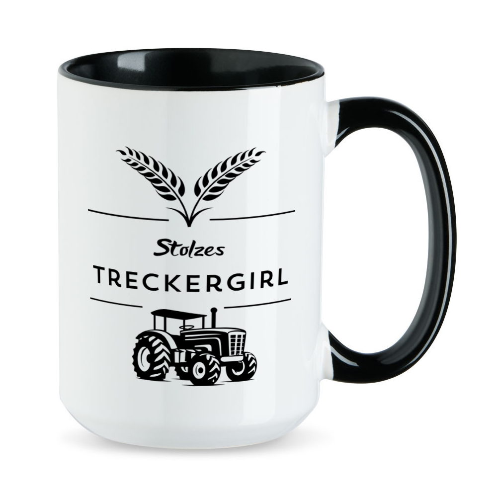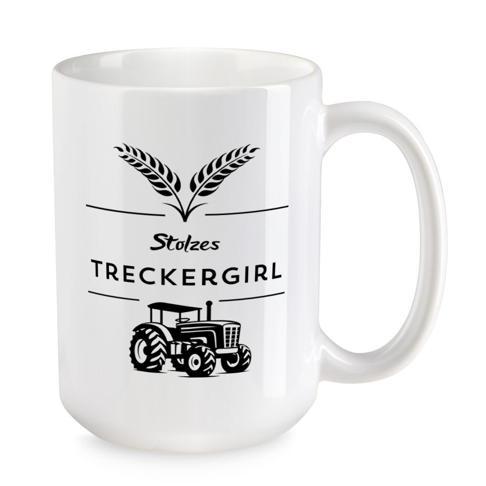 Wer sagt, dass Landwirtschaft nur was für Jungs ist? Sei auch Du mit dieser extra großen Tasse ein “stolzes Treckergirl”, denn Du hast alles im Griff, vom Trecker bis zu den Kühen und Dir kann auch kein Kerl so schnell was vormachen in Deinem Fachgebiet.
