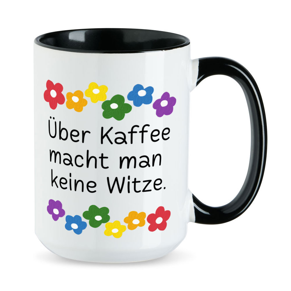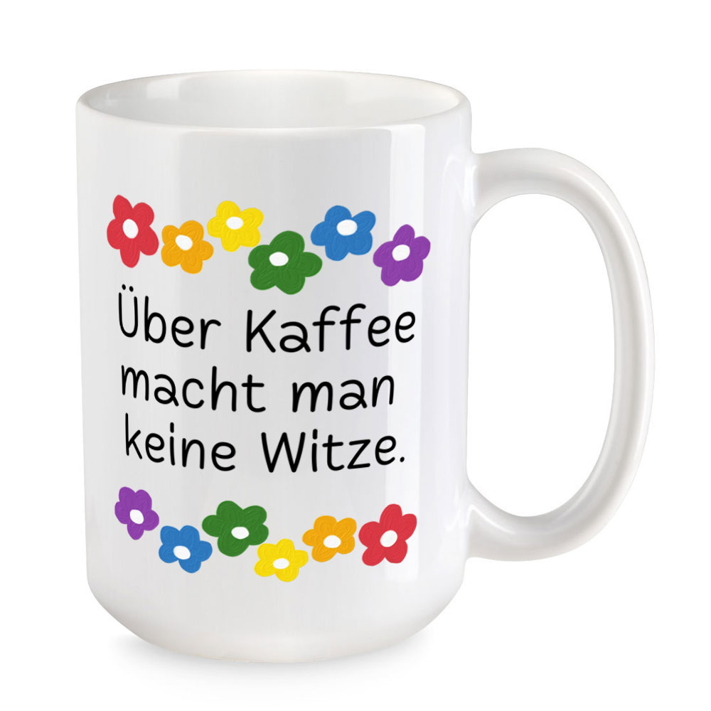 Kaffee ist für viele überlebenswichtig. Ein Grundbedürfnis wie schlafen oder Wärme. Und darüber macht man einfach keine Witze, ein Grundbedürfnis muss nur schnell gestillt werden. Diese witzige und extra große Sprüchetasse weiß genau, wie es läuft.