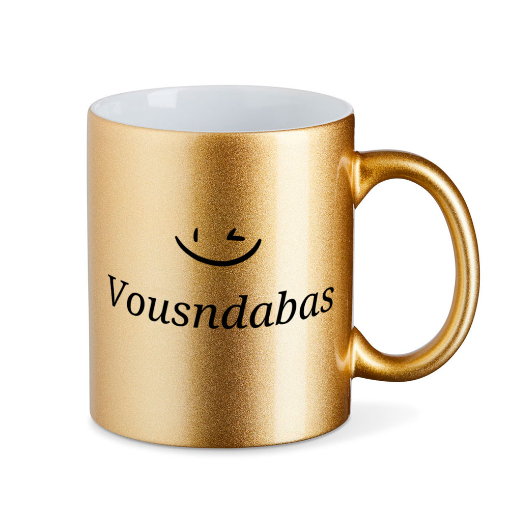 Ein klares, schnörkelloses Design mit einer französisch angehauchten Botschaft. Diese Metallic-Tasse könnte von einer Edelmarke sein… Wäre da nicht die Aufschrift, die man erst versteht, wenn man sie laut liest… Die Tasse „Vousndabas“ hat – im Gegensatz zu vielen der anderen Faquejoux-Artikeln – eine überaus freundliche Botschaft. Alles schön und wunderbar hier!