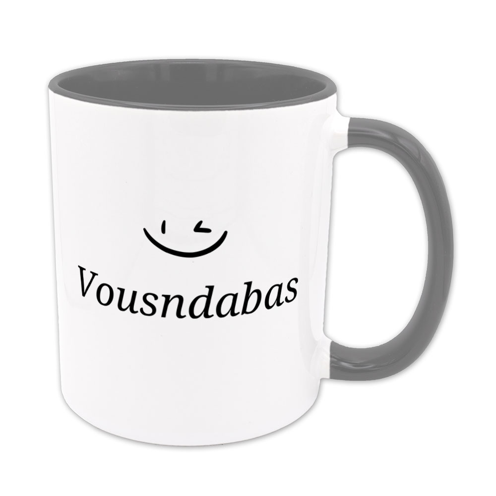 Ein klares, schnörkelloses Design mit einer französisch angehauchten Botschaft. Diese Tasse könnte von einer Edelmarke sein… Wäre da nicht die Aufschrift, die man erst versteht, wenn man sie laut liest… Die Tasse „Vousndabas“ hat – im Gegensatz zu vielen der anderen Faquejoux-Artikeln – eine überaus freundliche Botschaft. Alles schön und wunderbar hier!