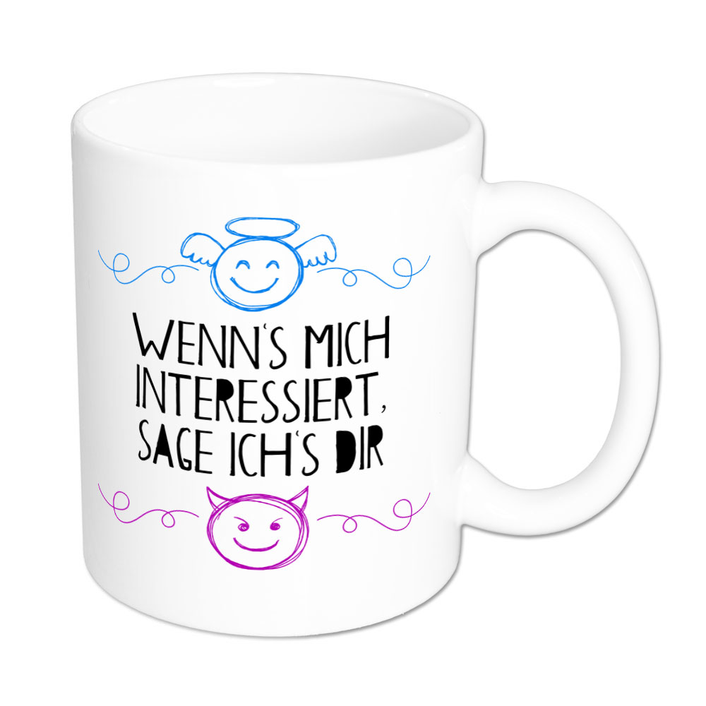 Diese Tasse aus unserer Serie Engelchen & Teufelchen trägt den Spruch „Wenn’s mich interessiert, sage ich’s Dir.“. Wenn du aus dieser witzigen Sprüchetasse trinkst, kannst du Dein Gegenüber auch mal warten lassen.